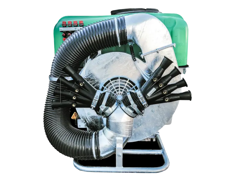 Nebulizzatore portato con ventilazione assiale. Versatilità e potenza in dimensioni compatte. L’AIR PROF è il nebulizzatore portato firmato Agriperrone pensato per chi cerca un’attrezzatura efficiente, maneggevole e compatta. La ventola assiale garantisce una copertura omogenea anche in trattamenti intensivi su vigneti a tendone, uliveti e agrumeti.