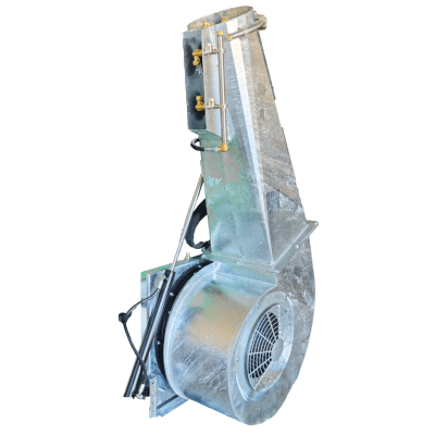 Moltiplicatore ad ingranaggi, Convogliatore con ventola zincato, Doppia girante centrifuga con frizione orientabile manualmente, Senza getti.