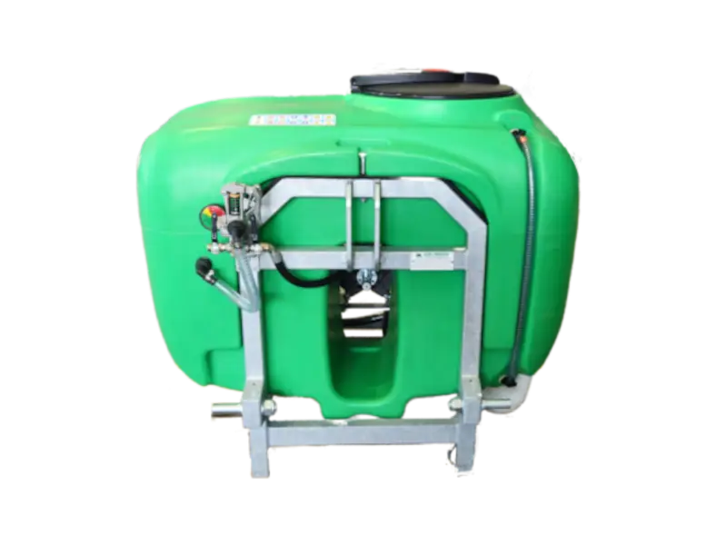 Serbatoio in polietilene, serbatoio lavamani, indicatore di livello esterno, telaio zincato a caldo, filtro aspirazione esterno con auto-riempimento, distributore, regolatore di pressione a distanza sul telaio, agitatore idraulico, senza aggiunto cardano.